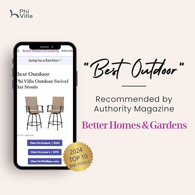 - 360 Degree Swivel Bar Stools: PHI VILLA this outdoor bar stools make you feel like having fun in a bar. 360 degree rotation which is convenient for you to rotate to any direction