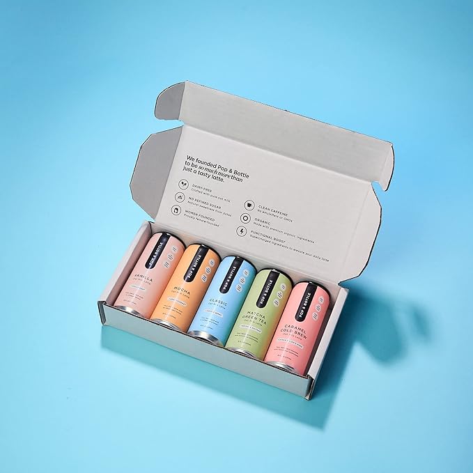 - CANNED COFFEE DRINKS - Pop and Bottle oat milk latte drinks are crafted to help jumpstart your day with organic ingredients & supplements to keep you going while at home or on the go.