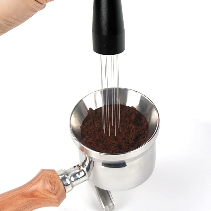 - Uniform & Efficient Stirring: Needle type coffee distributor can easily dispense lumps of ground coffee, 0.4mm thick and long needle for even distributing, wide strrring area, stirring needles effectively improve the spatter problem caused by the agglomeration of fine powder,or produce channel effects, etc. Optimize extraction.