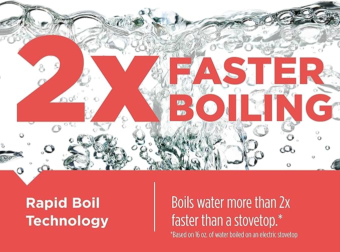 - Rapid Boil Technology - Faster than a microwave or stovetop. The powerful heating element boils water quickly, saving you time in the kitchen.