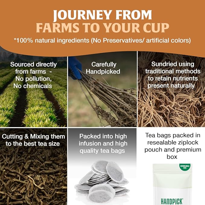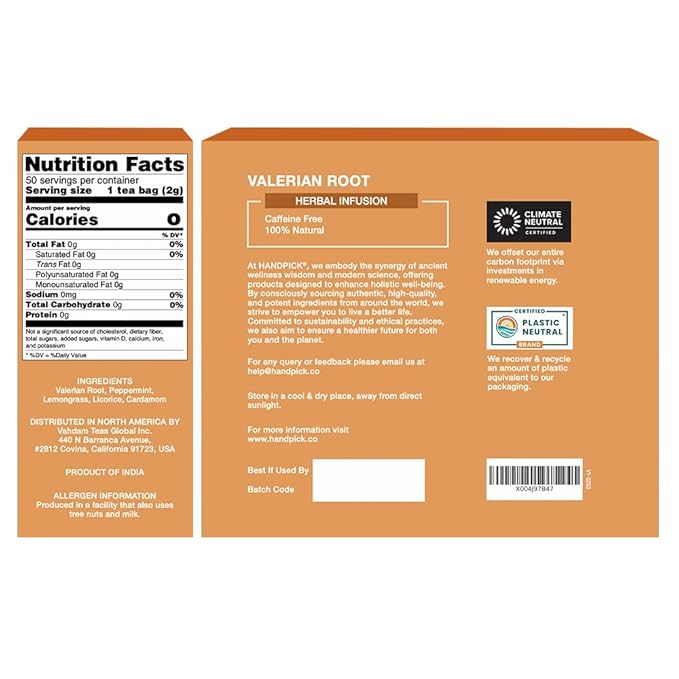 HANDPICK, Valerian Root Tea Bags (Valeriana) 50 Count | Non-GMO, Caffeine Free, Real Ingredients | Earthy/Woody Herbal Tea Bags | Round Eco-conscious Teabags
