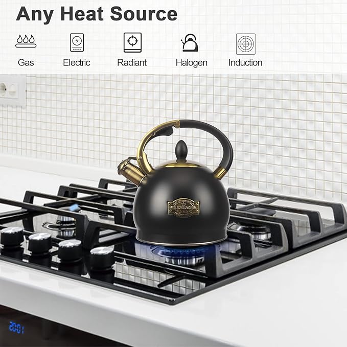 - Perfect Whistling Sound of Teakettle: This tea kettle for stovetop has a tight-fitting lid keeps steam in the hot tea kettle for rapid heating, and realse pleasant whistles sound when water reaches a boil, Loud enough to alarm you when you busy in the next room.