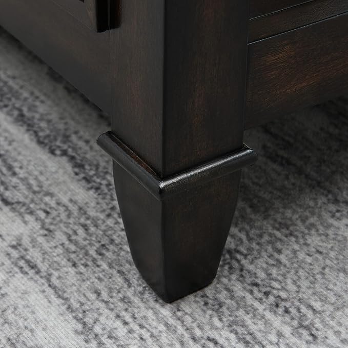 - FARMHOUSE LIVING ROOM TABLE:Solid wood frame and legs with rustic brown finished, tempered glass tabletop.The wood frame make sure stability and durability,while using glass to increase the simple and stylish sense of the coffee table. The solid wood bottom storage shelf provide more space for your need