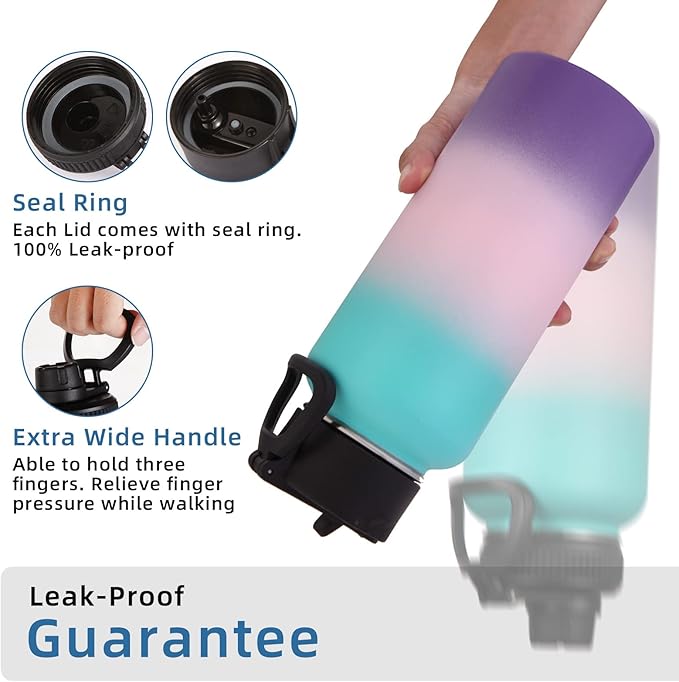 Volhoply 32oz Insulated Water Bottles Bulk 2 Pack with Straw Lid &Spout Lid,Stainless Steel Sports Water Bottle,Double Wall Vacuum Cups,Leakproof Wide Mouth Metal Flask for Travel(Gradient Color,2)