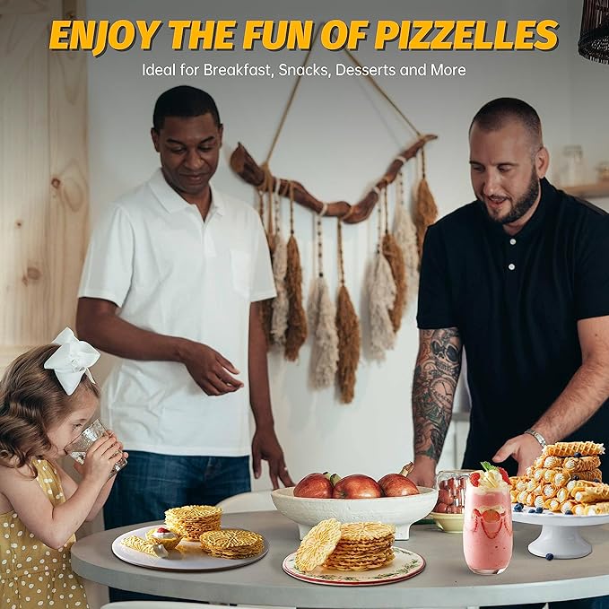 - [THIN & UNIFORM PIZZELLES]: The cooking plate heats up evenly, makes uniform and thin pizzelles with crispy texture. (Even Heating Distribution Updated in Jan 2023)