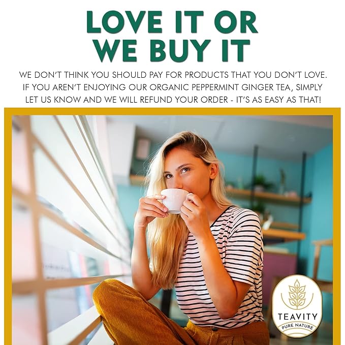 Organic Ginger Tea Pods for Keurig with Organic Peppermint Tea - Decaf Tea for K Cup Brewing Peppermint Ginger by Teavity (36 Tea Pods)