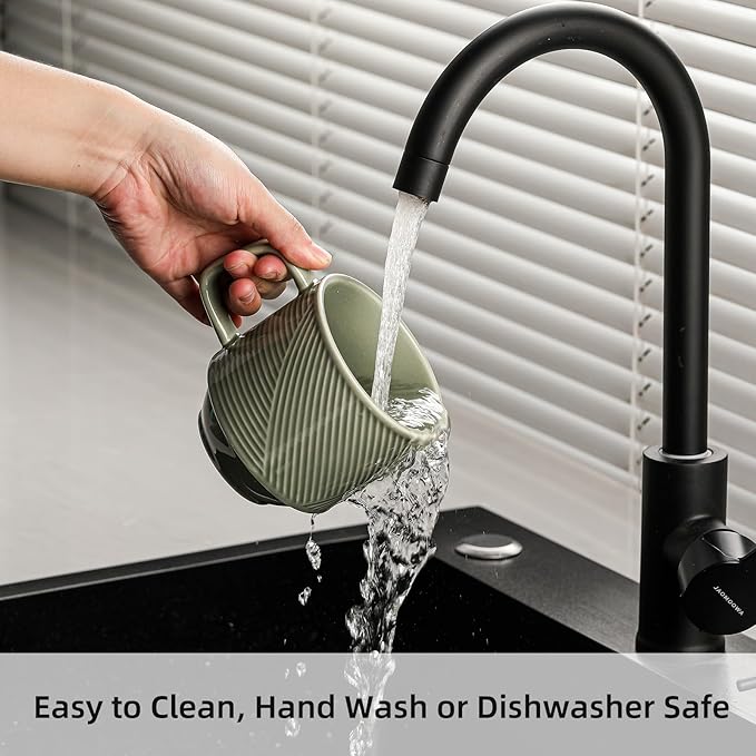 - Outstanding Design: The pea green color of the coffee mugs, with its stripe surface, provides a sophisticated and rustic beauty; the stripe not only provides a non-slip surface, but also adds depth to the rich, making it an striking focal point in any setting