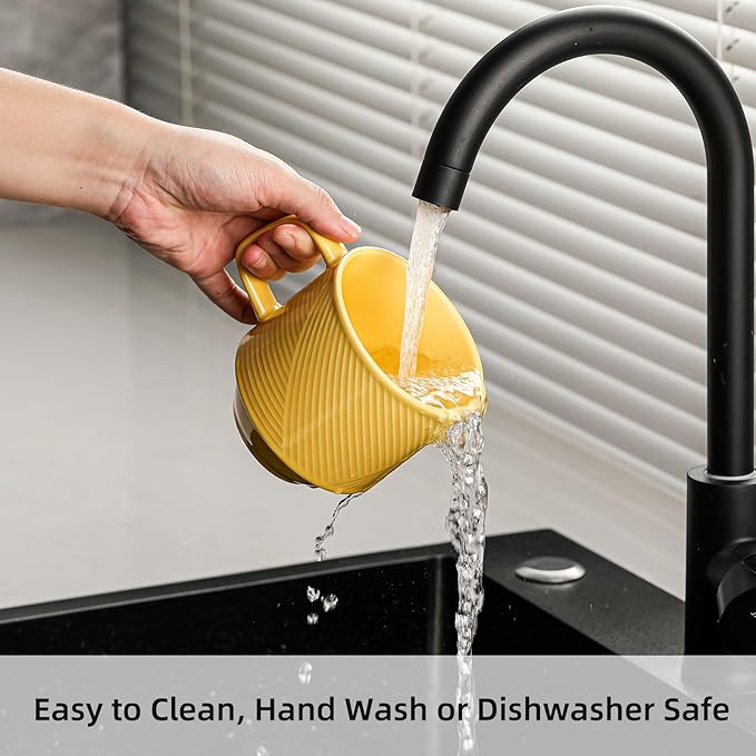 - Outstanding Design: The yellow color of the coffee mugs, with its stripe surface, provides a sophisticated and rustic beauty; the stripe not only provides a non-slip surface, but also adds depth to the rich, making it an striking focal point in any setting