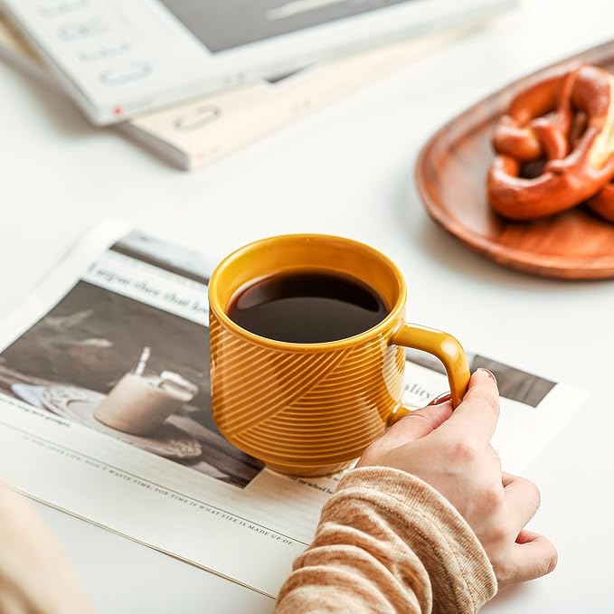 - Outstanding Design: The mustard yellow color of the coffee mugs, with its stripe surface, provides a sophisticated and rustic beauty; the stripe not only provides a non-slip surface, but also adds depth to the rich, making it an striking focal point in any setting