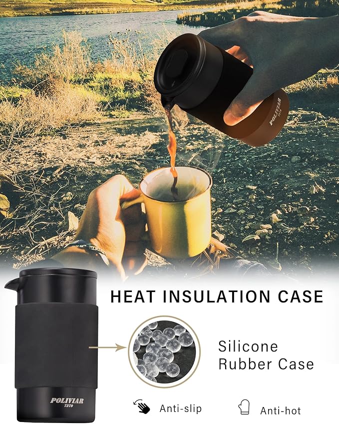 - BREW FRESH COFFEE ANYTIME AND ANYWHERE - Different form normal portable french press, POLIVIAR french press comes with a coffee grounds canister and an exquisite collection bag that it is light and convenient for coffee lover to carry out. The 12 oz capacity is perfect for 1 cup coffee that user can brew rich and fresh coffee anytime and anywhere they want.