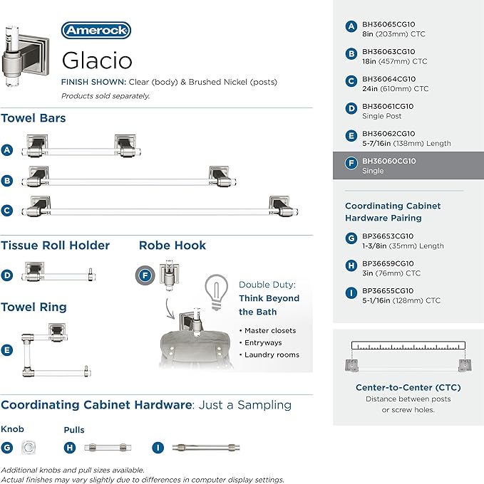 - Pair with matching cabinet knobs and pulls from the Amerock Glacio collection for a effortless designer hardware look
