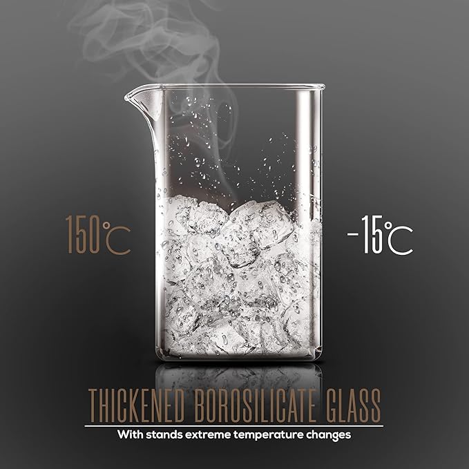 - Durable heat resistant borosilicate glass carafe beaker sits in stylish insulated plastic frame which makes pouring coffee easier and prevent wobbling