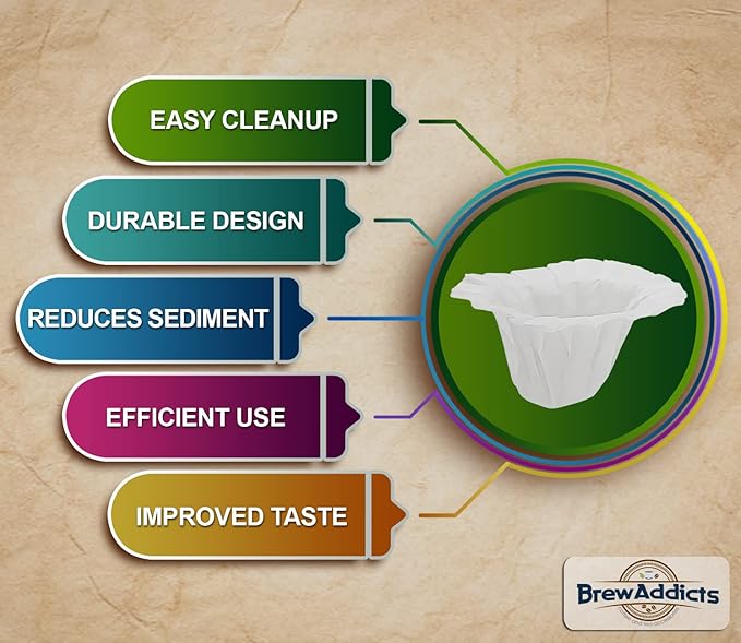 - ✅ HIGH-QUALITY FILTERS - Durable and reliable, Brew Addicts paper filters are designed for optimal performance with your reusable filter. Enjoy a smooth, well-brewed cup of coffee without sediment at the bottom of your mug. These filters help trap natural oils to enhance flavor and prevent bitter taste.