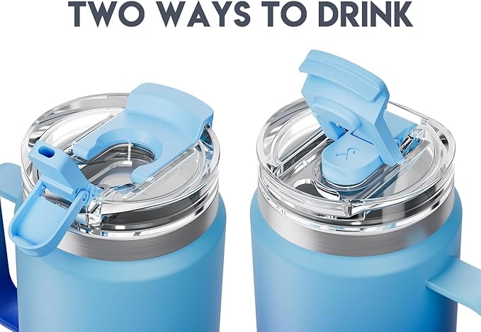 Meoky 32oz Tumbler with Handle, Stainless Steel Travel Mug with 2-in-1 Straw and Sip Lid, Vacuum Insulated Coffee Mug, 100% Leak Proof, Keeps Cold for 24 Hours or Hot for 8 Hours (Sky)
