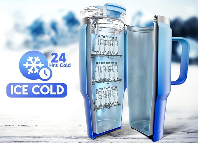 - STAYS COLD. With double-wall vacuum insulation, Meoky coffee tumbler stays cold for 24 hours and hot for 8 hours.