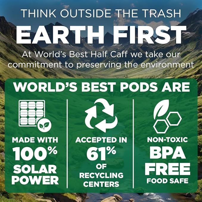 - Recyclable Half Caff Espresso Roast Coffee Pods - Our Espresso Roast Half Caff Coffee Pods are made from recyclable #5 plastic materials and feature easy peel tabs to ensure recyclability across the USA. Check your local recyclability facilities to find out more, not recyclable in all communities.