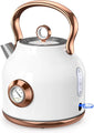 - 1.7L Large Capacity & Retro Design☛ This electric tea kettle can heat 8 cups of water, illuminating the power switch when it's on and turning it off automatically once it's done. One-touch buttons with neon blue LED indicators make operation easy. Elegant retro-style will add a unique touch to your kitchen décor. The kettle's handle is made of heat-resistant and lightweight PP material, and the curved design is designed to fit your hand better and keep pouring easily.