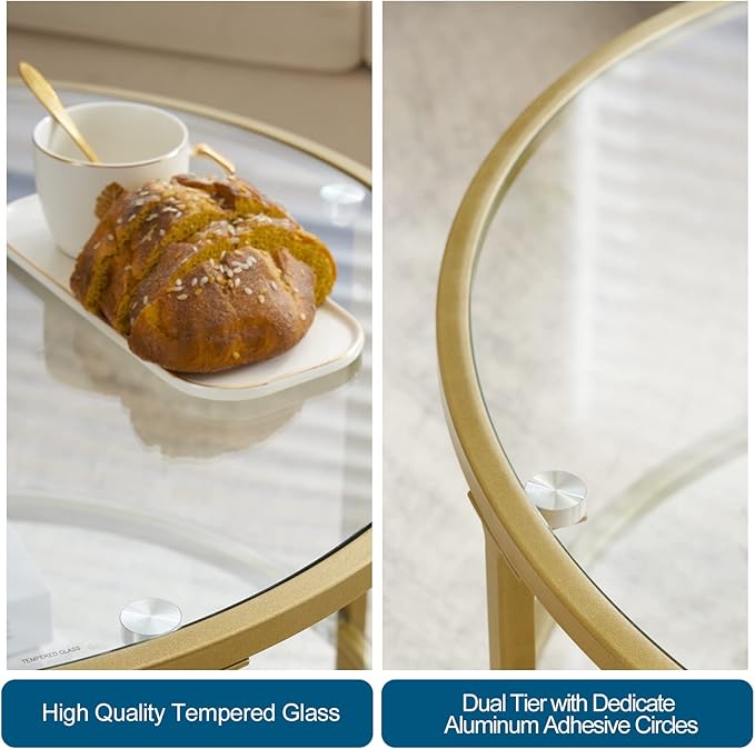 - 【Chic&Contemporary Looking】A chic coffee table couldn't be perfectly presented without the dedicated efforts made into its craftsmanship details. Instead of using plastic adhesive circles on the top glass fixture at a lower cost, we choose premium aluminum pre-assembled adhesive connectors to instantly make your circular coffee table outstanding than most others in the market while at a quite affordable price.