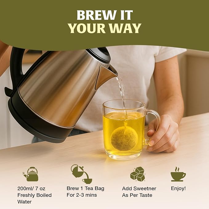 - PACKED IN ECO-CONSCIOUS TEA BAGS - Our eco-conscious tea bags are packaged without dyes, chemicals, adhesive, glue, or chlorine bleach. Enjoy pure, high-quality tea that's free from harmful additives, for a soothing and flavorful tea experience.