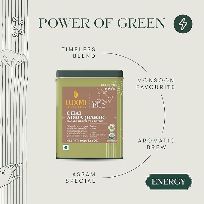 Luxmi Estates Chai Adda-Bari 100gm Tin | Masala Chai | Certified Organic Black Tea