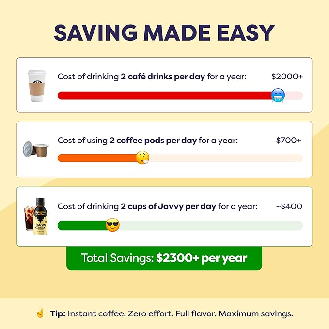 - Insane Value – Each bottle contains up to 35 servings of coffee concentrate which is 3x more servings than our competitors. With Javvy Coffee, you're only spending less than $1/cup meaning you get to enjoy Premium specialty coffee every day without breaking the bank!
