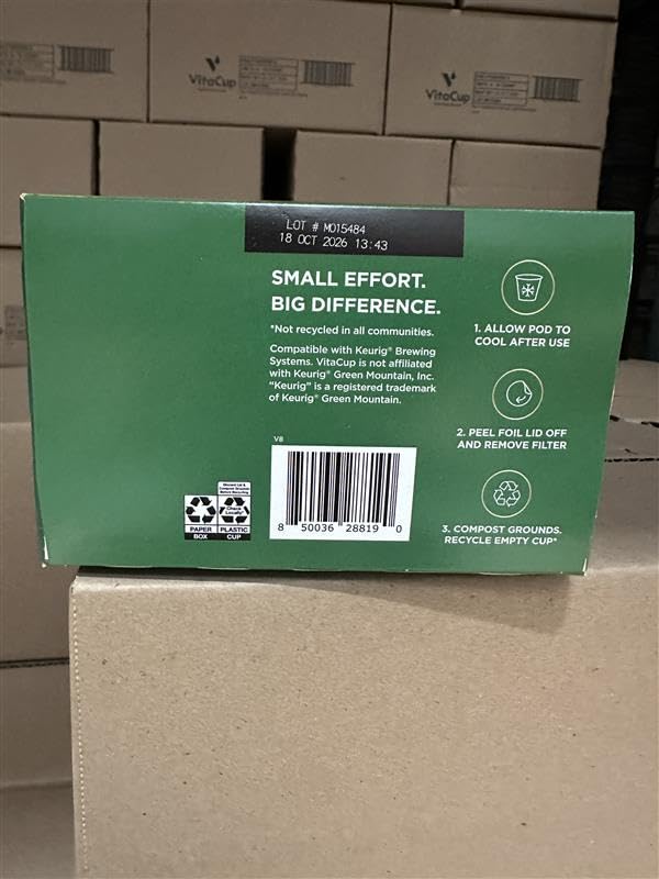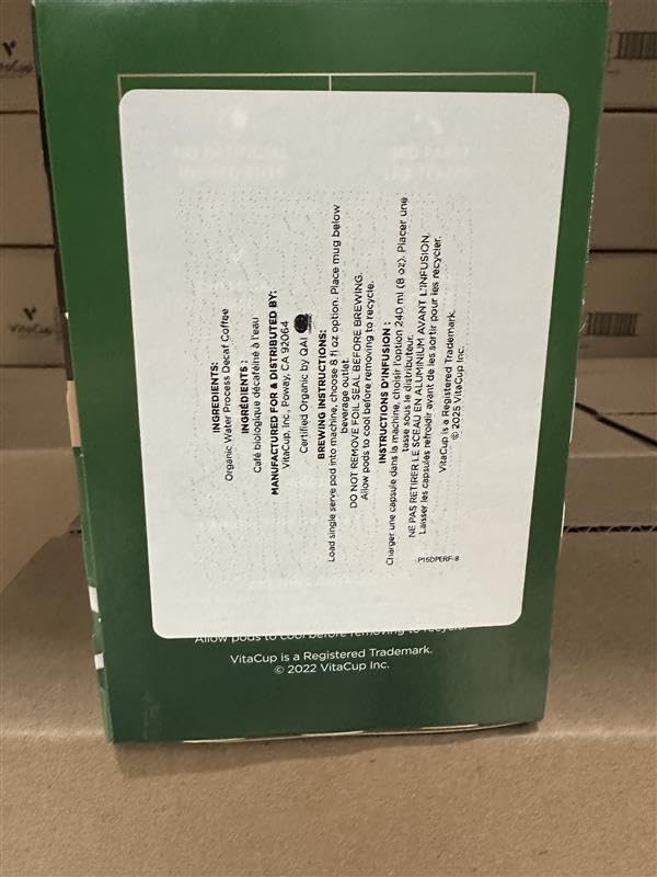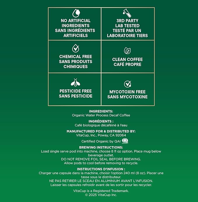 VitaCup Organic Perfect Dark Roast Decaf Coffee Pod for Pure & Clean Energy, Antioxidants, Low Acid, Peru Single Origin in Recyclable Single Serve Pod compatible w/Keurig K-Cup Brewers,16CT