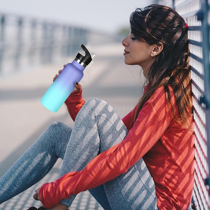 - 【Vacuum Insulation and nice Size】Designed with double-walled vacuum insulation, featuring superior insulation and a condensation-proof design. Volhoply Water bottle can keep hot for 12 hours and keep cold for 18 hours, allowing you to enjoy your favorite flavor in the long run. The cups fit on the car bike cup holder and inside the backpack for your hiking, biking, beach, camping and fitness