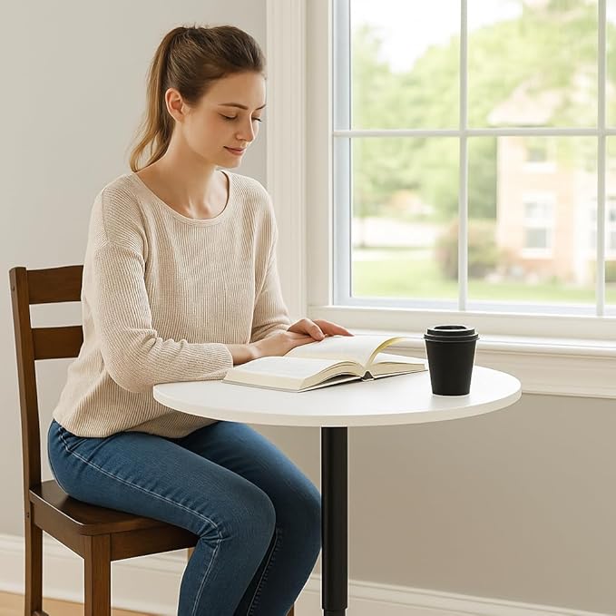 Magshion 23.5'' Round Adjustable Height Wood Bar Pub Table Adjustable Range 27.5"-36" Living Room Dining Room Bar Cocktail Table (White Black)