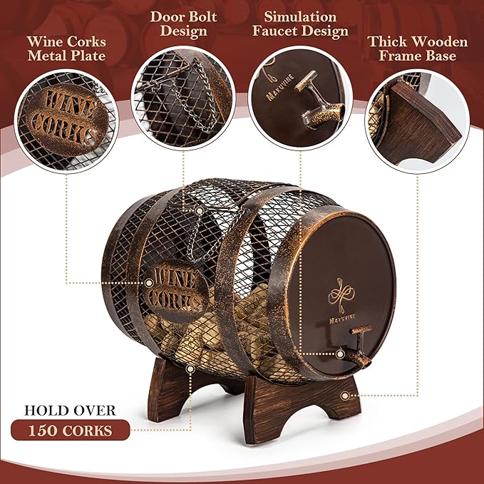 - Handcrafted: The wine barrel cage are handmade using durable metal, painted with a rustic finish. Wine corks are not included.Great for Wine Cork Collectors.