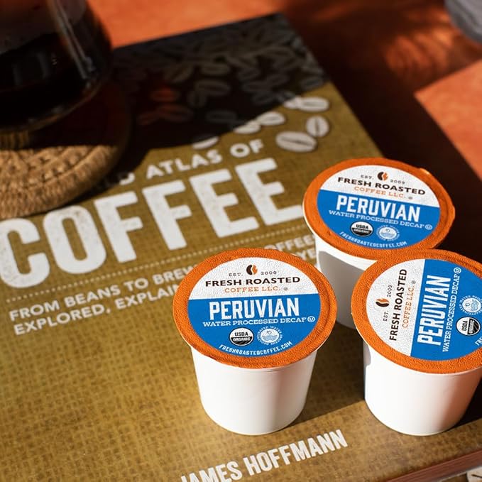 Fresh Roasted Coffee, USDA Organic Peru Water-Processed Decaf | 3rd Party Tested for Pesticides, Mold, Mycotoxins, Kosher | 100% Arabica, Specialty Grade, Med Roast 24 Pods for K Cup Brewers