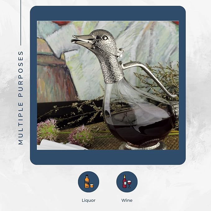 Regent Silverplated Duck Decanter 25.3 oz, 750ml Carafe, Wine Gift, Decanter for Wine, Men/Women's Good Gift on Special Day