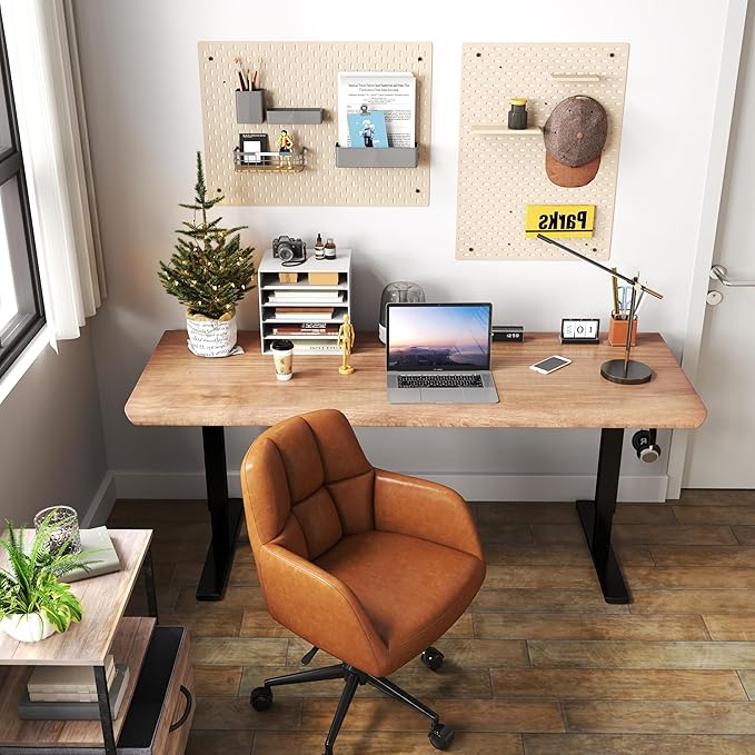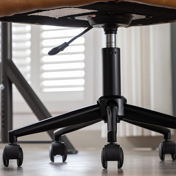 VESCASA Adjustable Home Office Desk Chair with Comfy Square Tufted Mid-Back, Faux Leather 360 Swivel Upholstered Task Armchair with Wheels for Teens Bedroom/Living Room, Brown