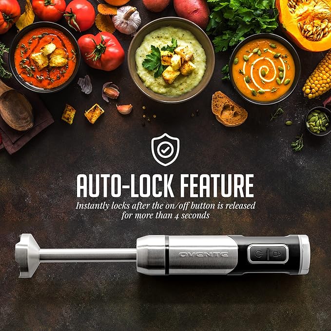 OVENTE Cordless Immersion Hand Blender, Rechargeable Handheld Portable Stick Mixer with 8 Mixing Speed Option, One-Touch Control and Stainless Steel Blades for Smoothies, Shakes or Soups, Black HR981B