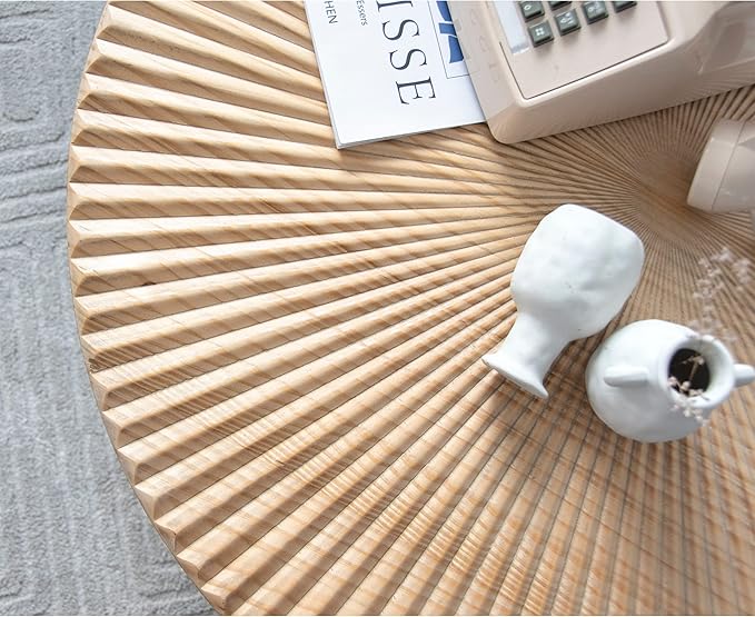 LONYKE 2-Piece Farmhouse Nesting Table Round with Handcrafted Wood Radial Pattern, Modern Coffee Table Set for Living Room