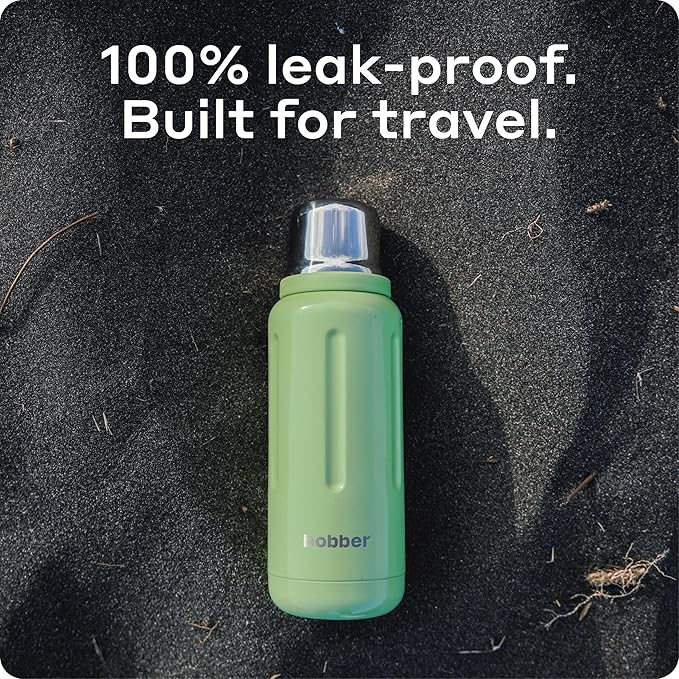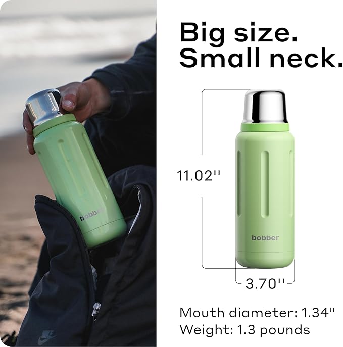 BOBBER 34 oz / 1 Liter Stainless Steel Travel Thermos for Hot and Cold Drinks – Dishwasher Safe Metal Water Bottle with Cup Lid – Keeps Hot for 48 Hours – BPA-Free, Vacuum Insulated (Mint Cooler)