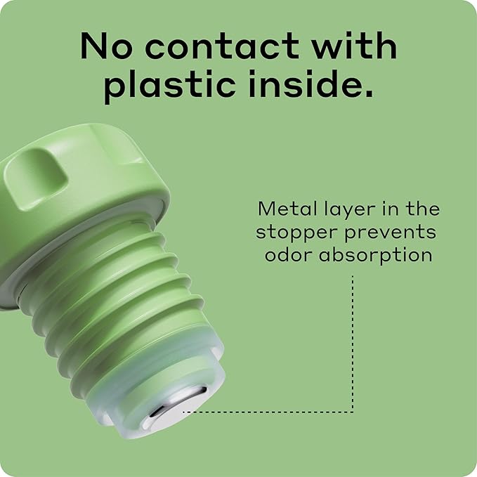 - SAFETY FIRST: 18/8 high grade rust-free stainless steel metal bottle. BPA-free, food-grade steel, food-grade plastic and silicone. Stopper has extra metal layer to prevent odor absorption. Your drink will never touch any plastic.
