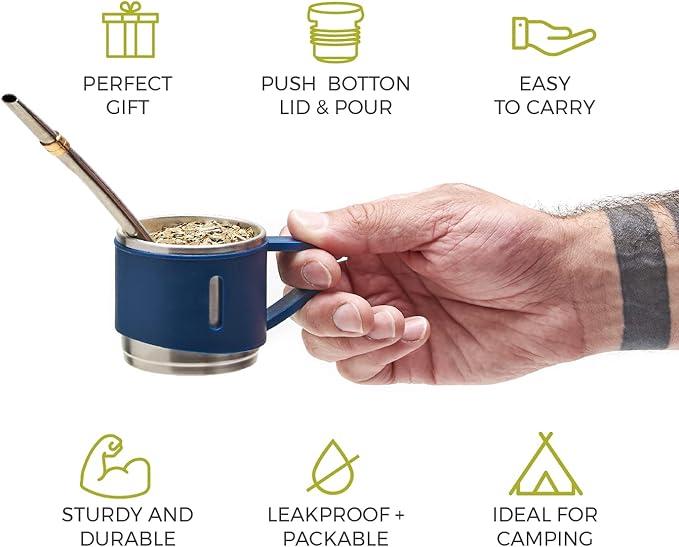 - INNOVATIVE THERMAL FLASK MATE FOR THE DAY - Our 18/8 stainless steel vacuum bottle holds 24oz I 700ml , fill it up once and be set for however long you need it. Easy to transport, it is the ideal flask for the Yerba Mate experience. Includes a Bombilla straw holder with 1 sturedy Bombilla the Mate cup cap. No spills, no mess. Enjoy the Mate experience the easy way!