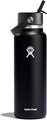 • 40 OZ BLACK BOTTLE: Flip it and sip it with the Hydro Flask Wide Mouth insulated water bottle with closeable straw cap. With a comfortable, flexible handle, the leakproof straw cap is easy to open and close, for on-demand hydration. Double-wall insulation keeps drinks cold up to 24 hours.