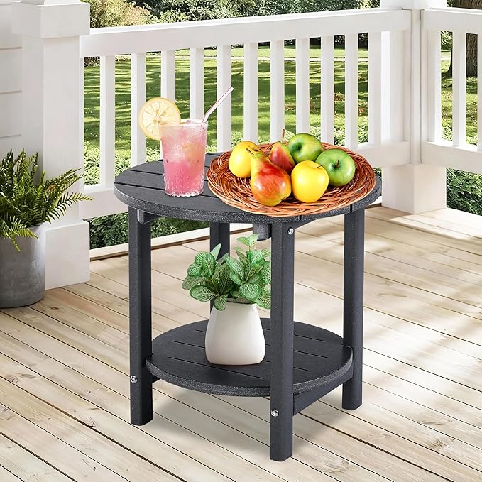 LZRS Round Adirondack Side Table Double End Table, Outdoor Side Tables for Patio, Backyard,Pool, Indoor Companion, Easy Maintenance & Weather Resistant(Grey)