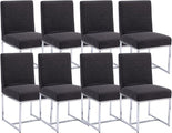 CIMOTA Black Modern Dining Chairs Set of 8, Upholstered Dining Room Chairs Armless Guest Side Chair with Chrome Base for Dining Room/Kitchen, Charcoal Black, 8PCS