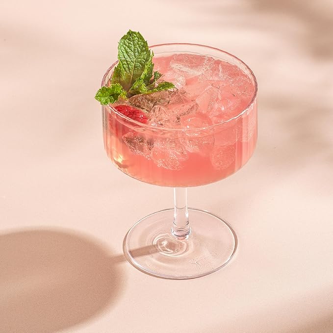 - FLUTED GLASSES FOR ART DECO DRINKS: This set of 2 ribbed glasses features a vintage fluted glassware texture that’s satisfying to hold, while bringing out beauty in drinks. Whether they’re filled with bubbles or used as Manhattan, Daiquiri or Martini glasses, these cute glasses are rippled for joy!