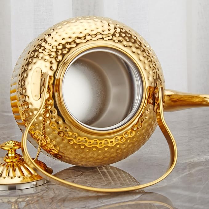 SANQIAHOME Antique 1.2L (40Oz) Stainless Steel Teapot with Infuser Gold