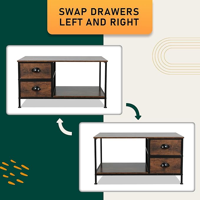 - Size & Capacity:Product Overall Dimensions: 31.5"D x 20"W x 16.8"H; Weight Capacity: Up to 132 pounds for each shelf;Drawers can be installed on either side of the coffee table