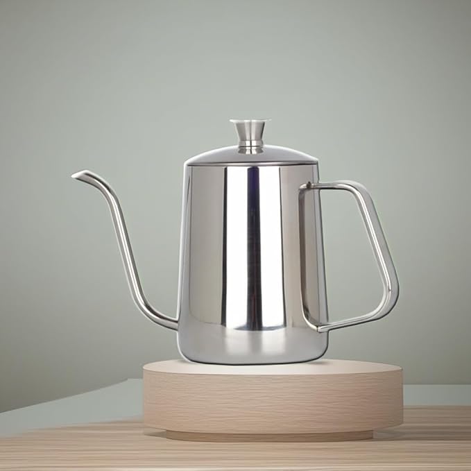 - This metal coffee kettle has a smooth surface and is elegant in appearance.