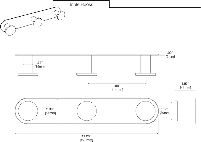 - Hangs three robes or full-size towels, and can double as a holder for- sponges, coats, clothes, hats, and jewelry