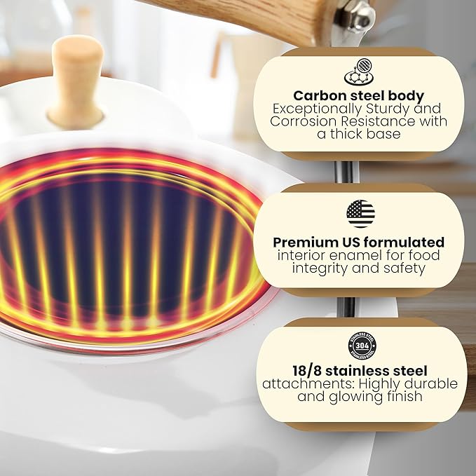- LASTING ELEGANCE, UNMATCHED QUALITY: Sven kettle is engineered with a focus on longevity and performance. The interior's commercial-grade US formulated porcelain glass enamel and the high-temperature fired enamel exterior offer unparalleled durability, ensuring this kettle remains an essential part of your kitchen for years to come.