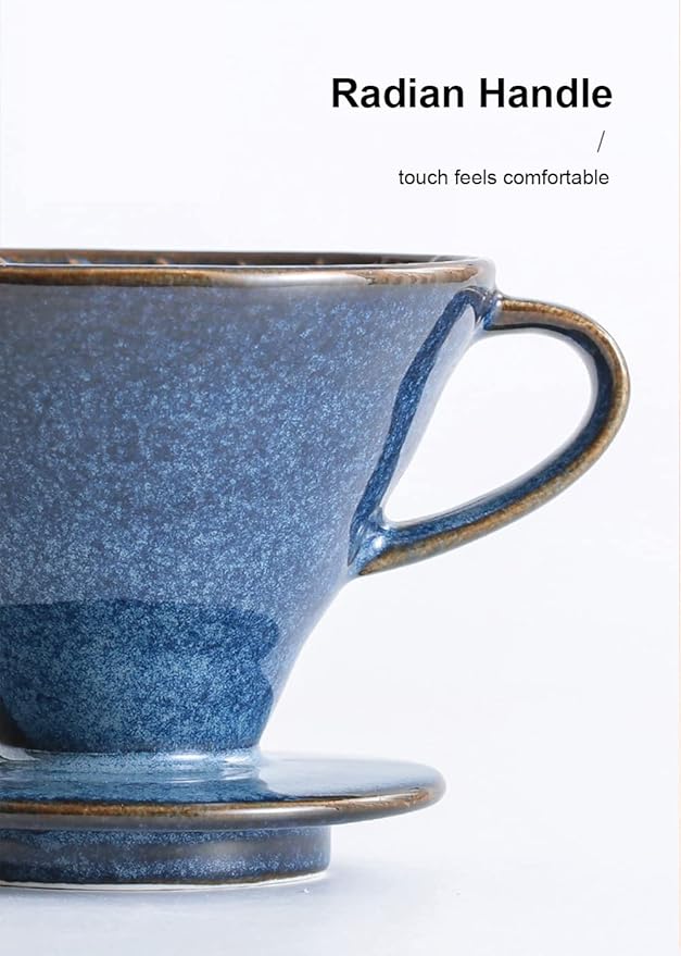 Ceramic Coffee Dripper Filter 60 Angle Tapered 02-4Cup Pour Over Coffee Ceramic Hand Brew Outdoor Cup Retro Filter Set Reusable Portable Coffee Maker (2/4 People Large - Sky Blue)