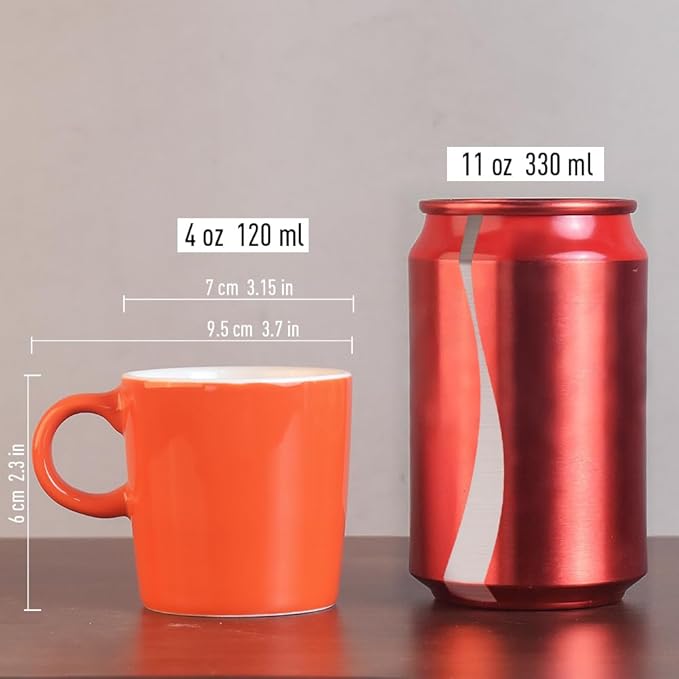 homEdge Mini Porcelain Espresso Cup, 4 Ounces / 120 ml Tiny Ceramic Coffee Mugs Demitasse for Espresso, Tea- Set of 6, Orange