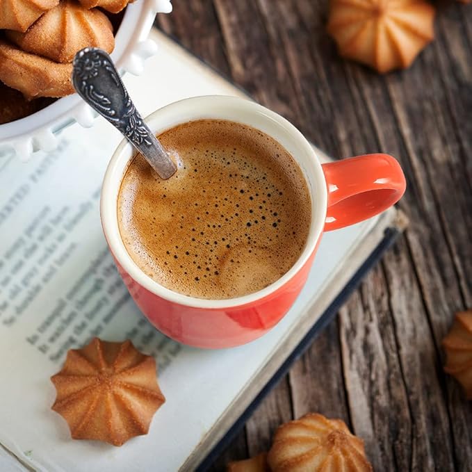 - Set of 6 orange porcelain, it's enough for your whole family to start the day with espresso.
