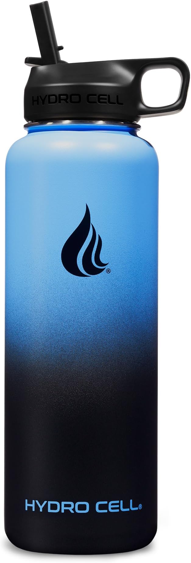 HYDRO CELL Stainless Steel Insulated Water Bottle with Straw - For Cold & Hot Drinks - Metal Vacuum Flask with Screw Cap and Modern Leakproof Sport Thermos for Adults (Blue/Black 40oz)